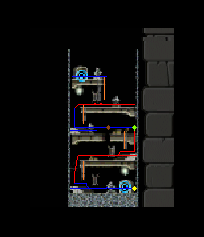 The route is manually drawn on the map image and automatically loaded when the user selects a map. Each point along the route is encoded with a specific pixel color, where each color represents a different navigation command (e.g., walk left, jump right, climb ladder).
