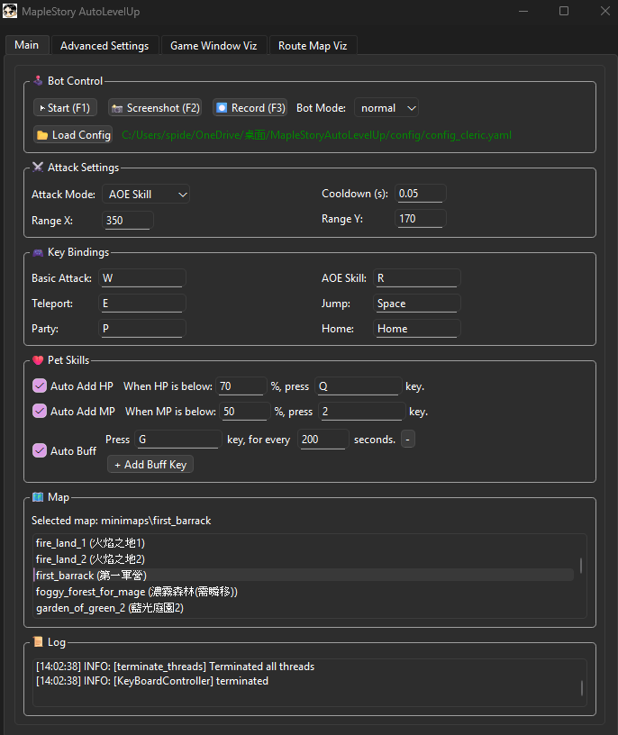 Users can easily select maps, assign key bindings, adjust bot behavior, and monitor logs—all without modifying any code. The visual feedback tools are especially helpful for debugging, giving users insights into how the bot interprets the game environment.